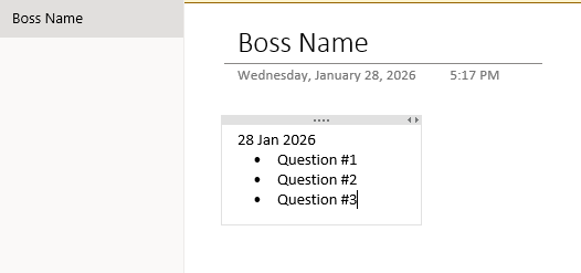 Open OneNote and create a page with your boss’s name.